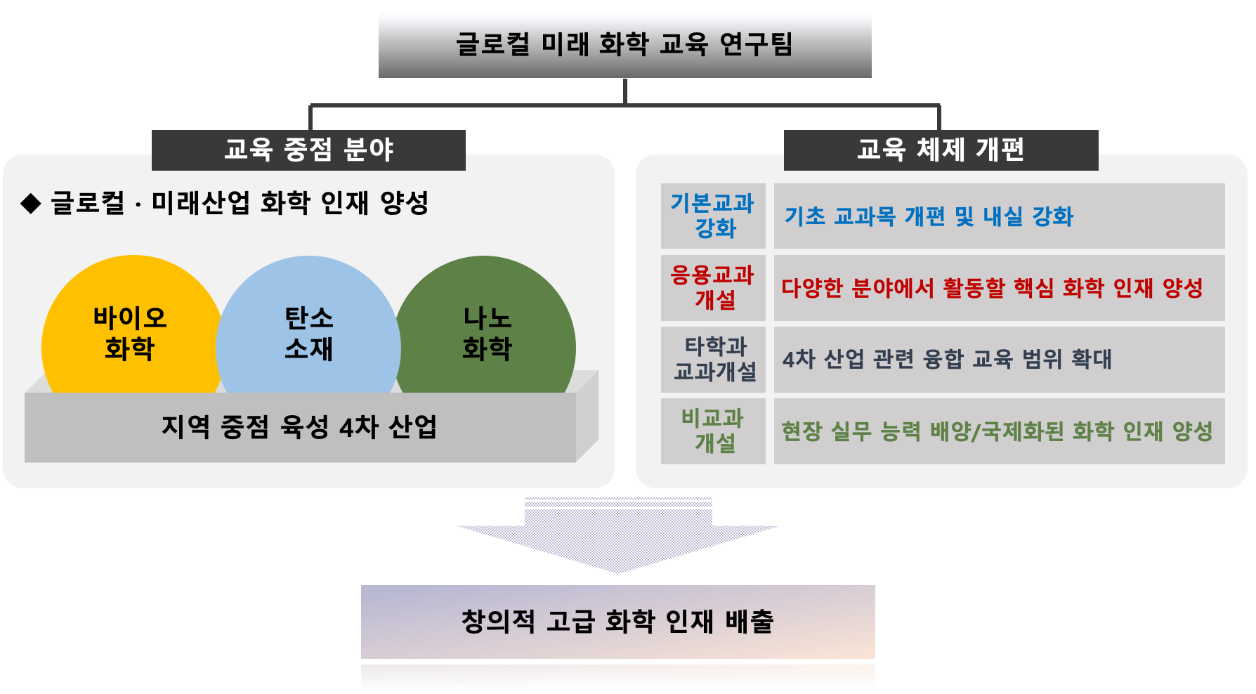 탄소, 고분자 소재, 제약, 바이오화학 소재와 관련 특화 산업에서 고급화학 인력 배출